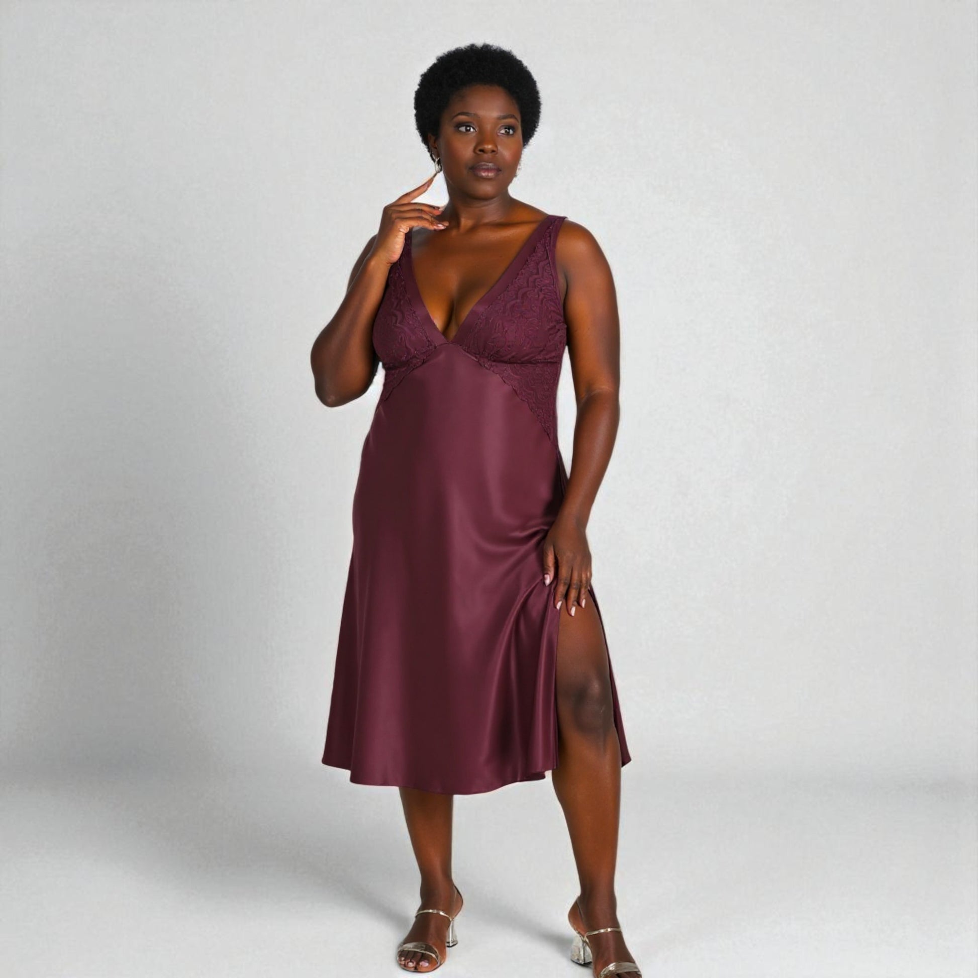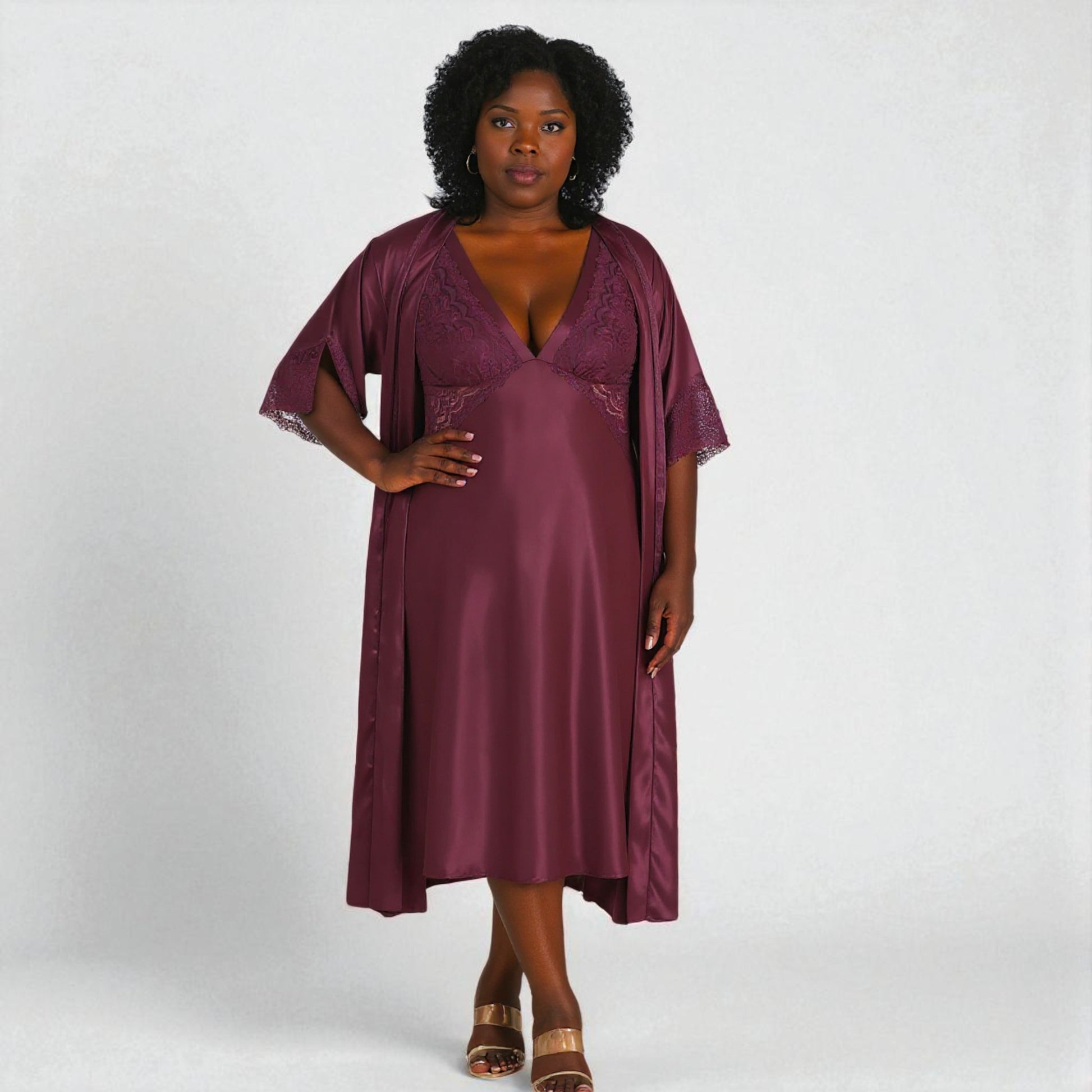 This stunning two-piece set is crafted from smooth, rich satin, the ensemble features delicate lace trim on both the cami and matching gown. It's the ultimate combination of luxury and comfort, perfect for lounging or an intimate night in. Style them together for instant chic, or mix with your favorite wardrobe pieces for endless looks.